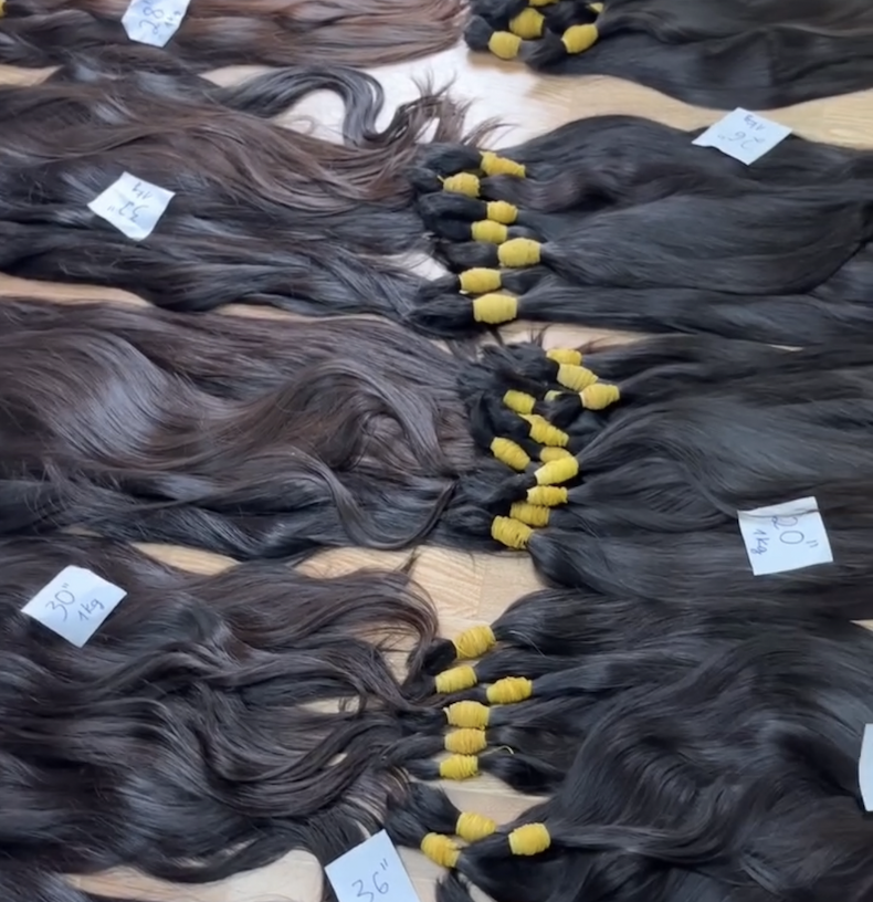 Raw hair comes exactly as it grows from the scalp: straight, naturally wavy, or curly. Every batch looks slightly different — and that’s what makes it special. It’s hair with a real human texture, not something manufactured.